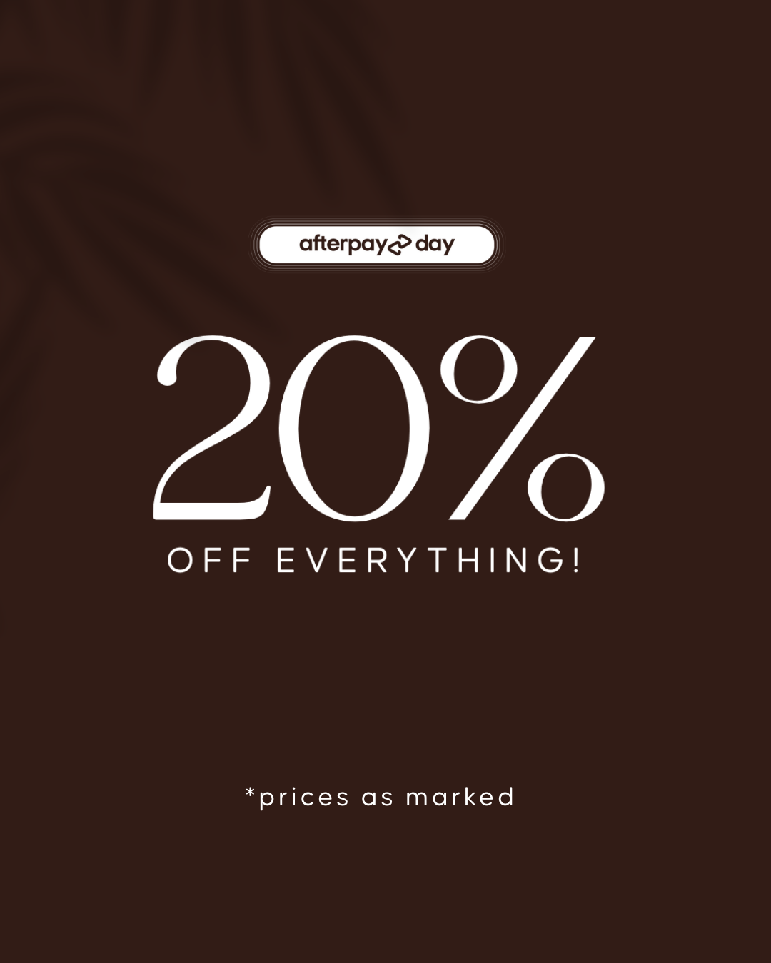 AFTERPAY DAY SALE 20% off EVERYTHING