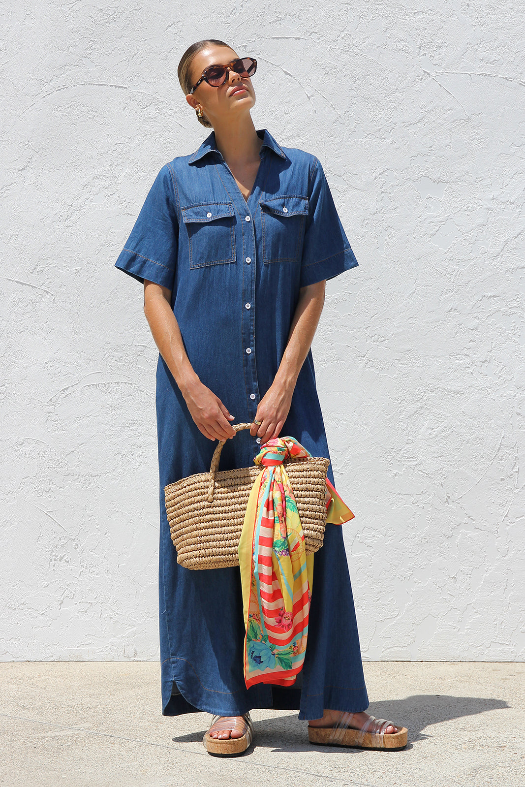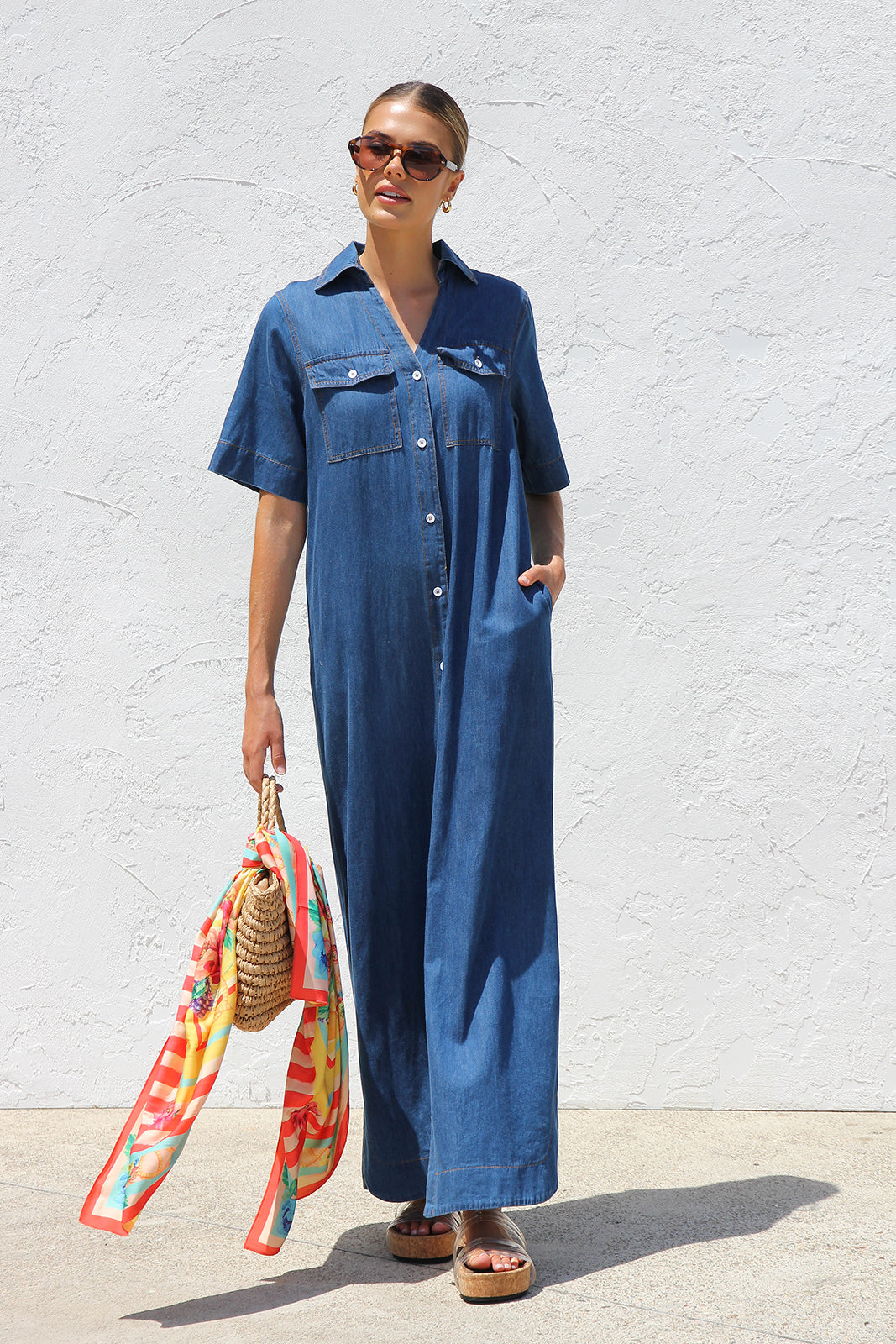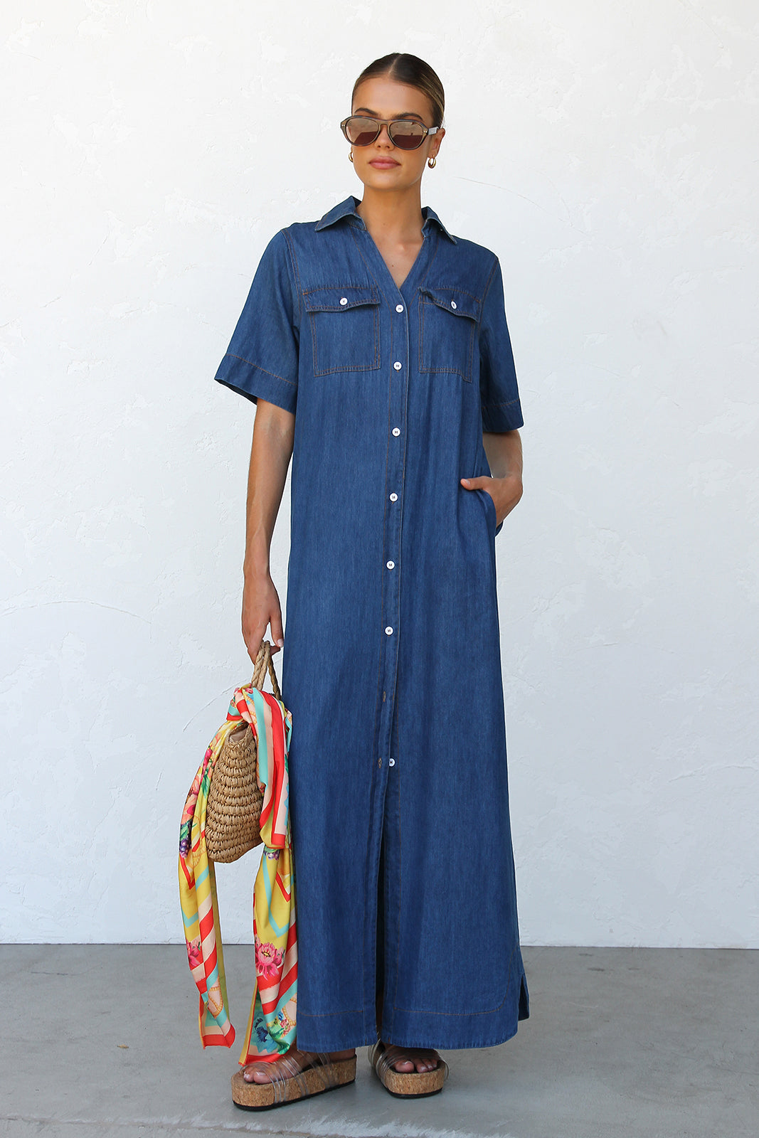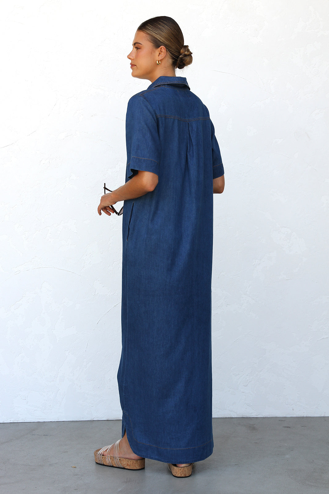 - indigo chambray shift style maxi dress