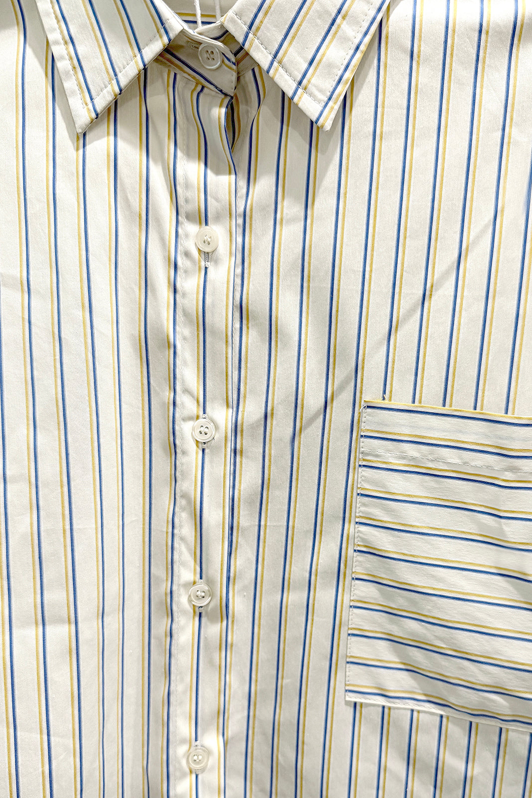 - refer to the image of fabric swatch for better colour indication, please note the base colour is light yellow with contrasting blue and mustard stripes as per fabric swatch