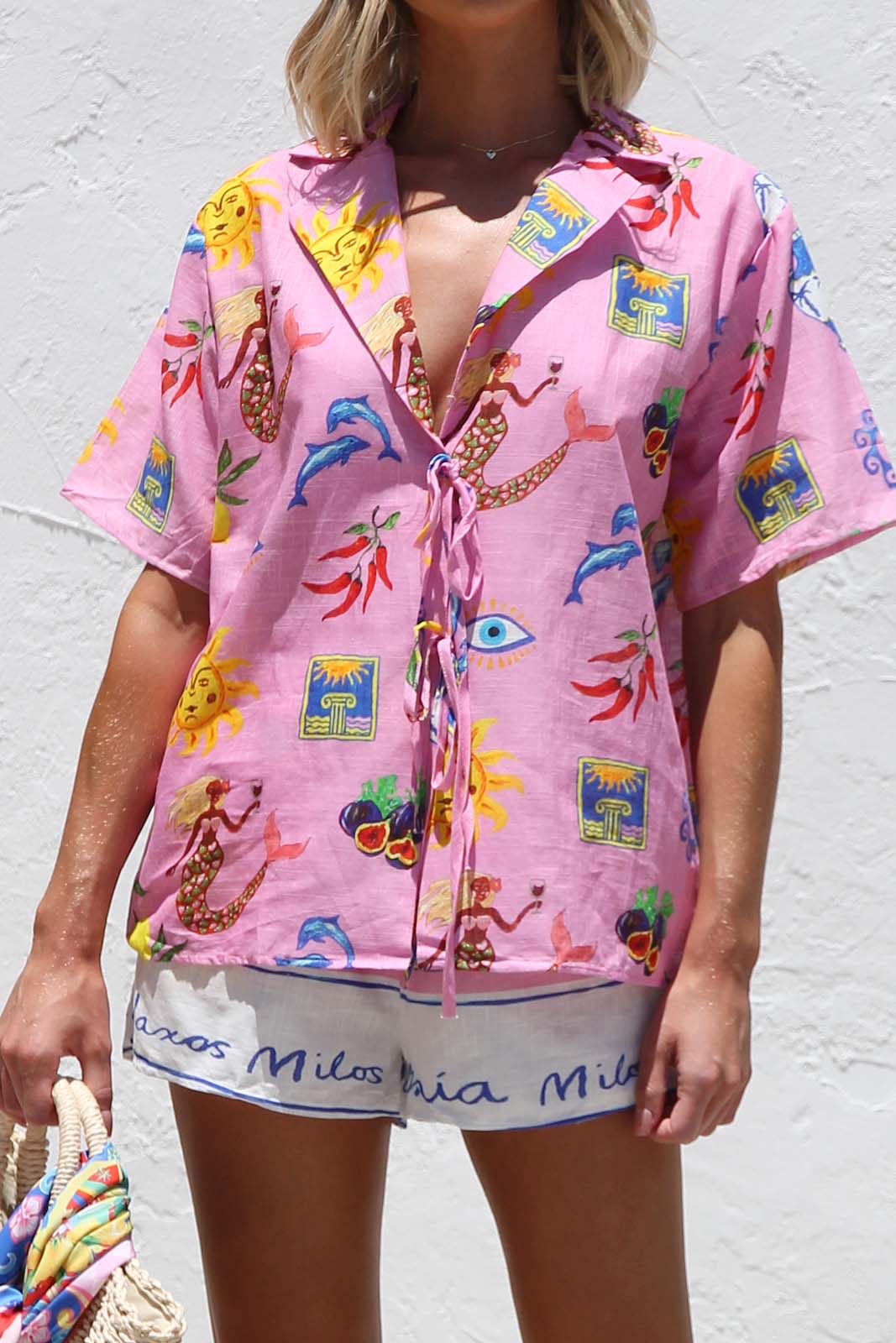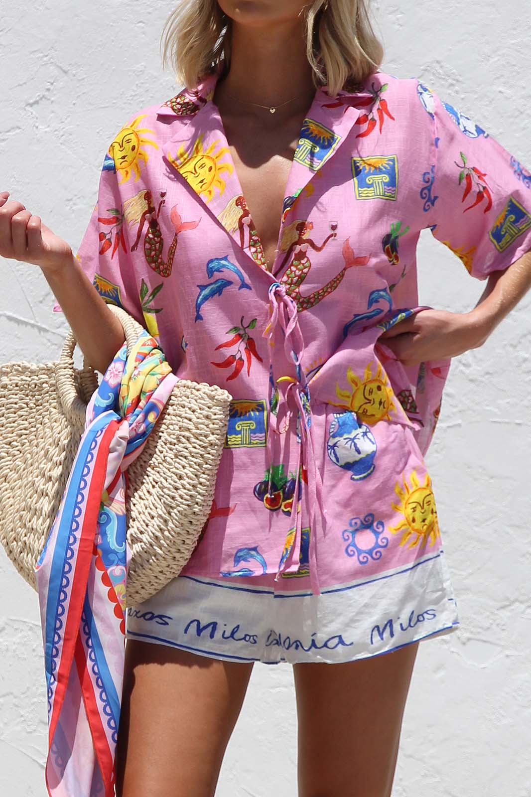 - pink base with multi contrast print