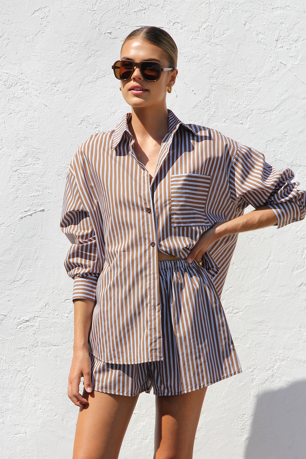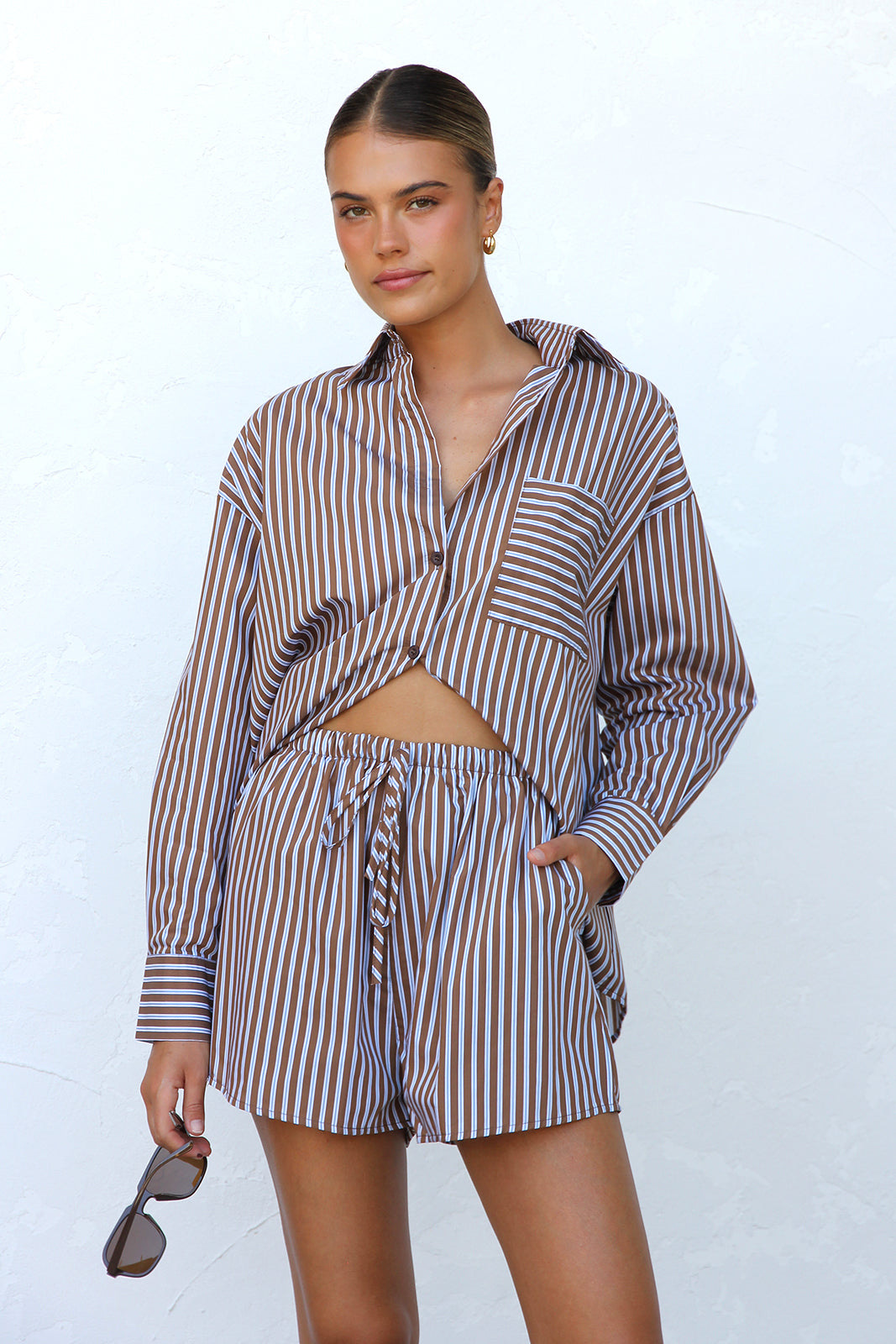 - long sleeve shirt and short two piece set
