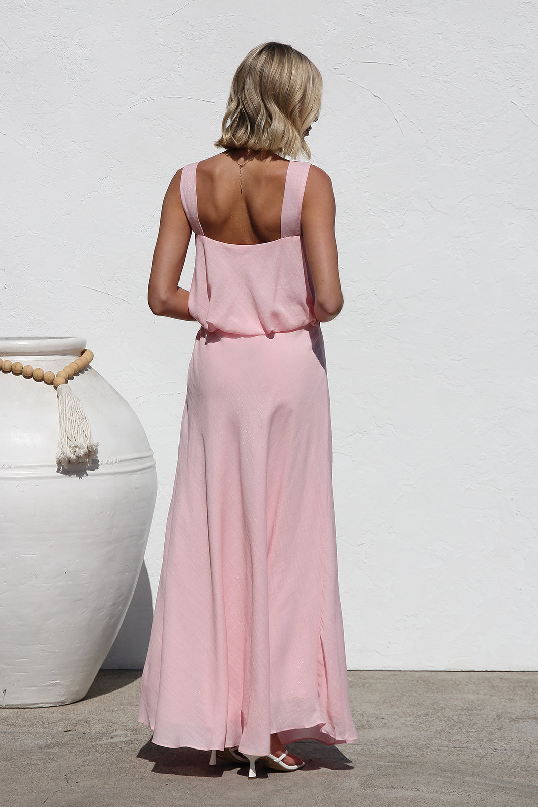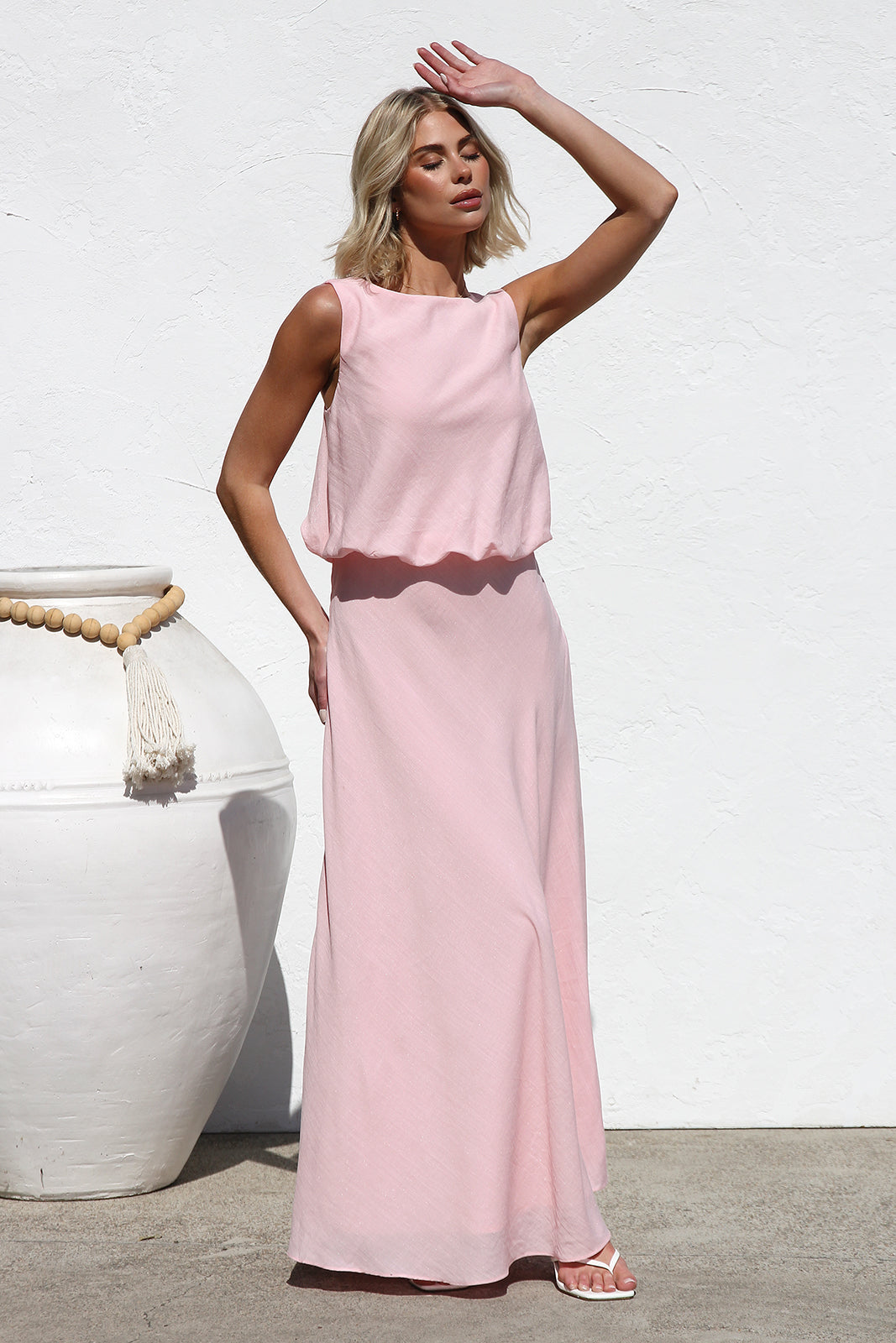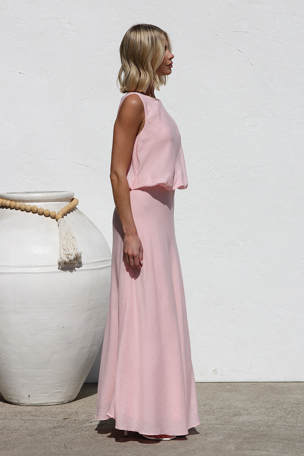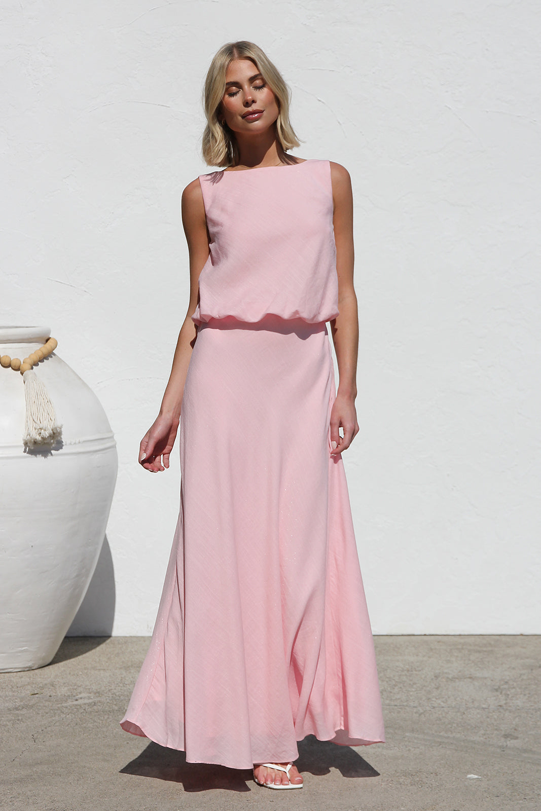 - pink sleeveless maxi dress