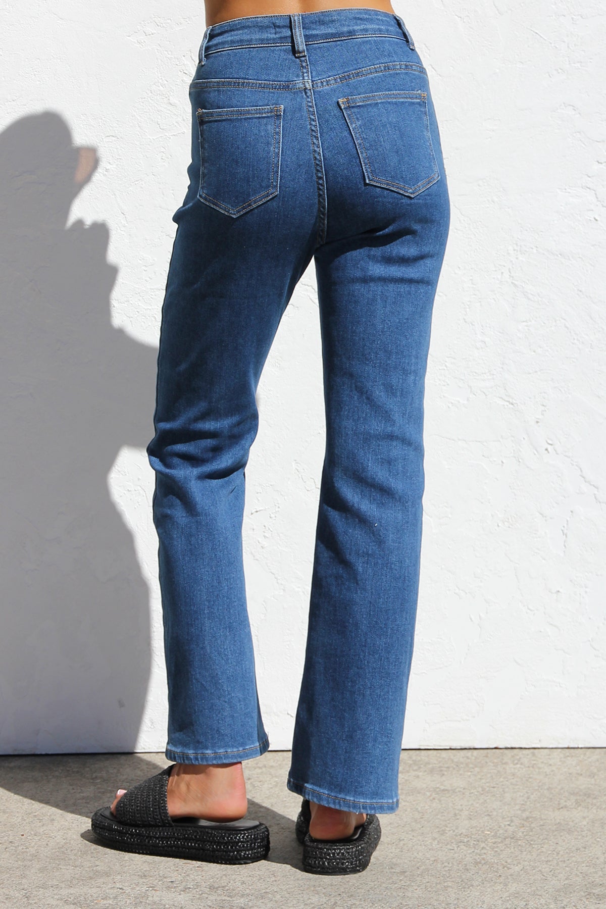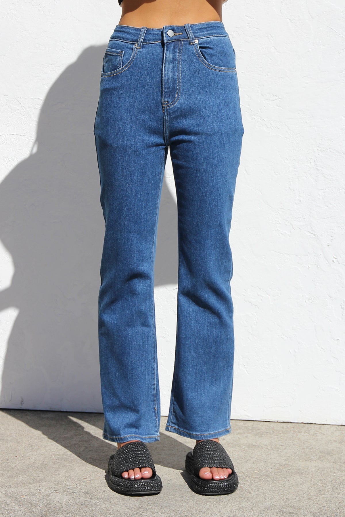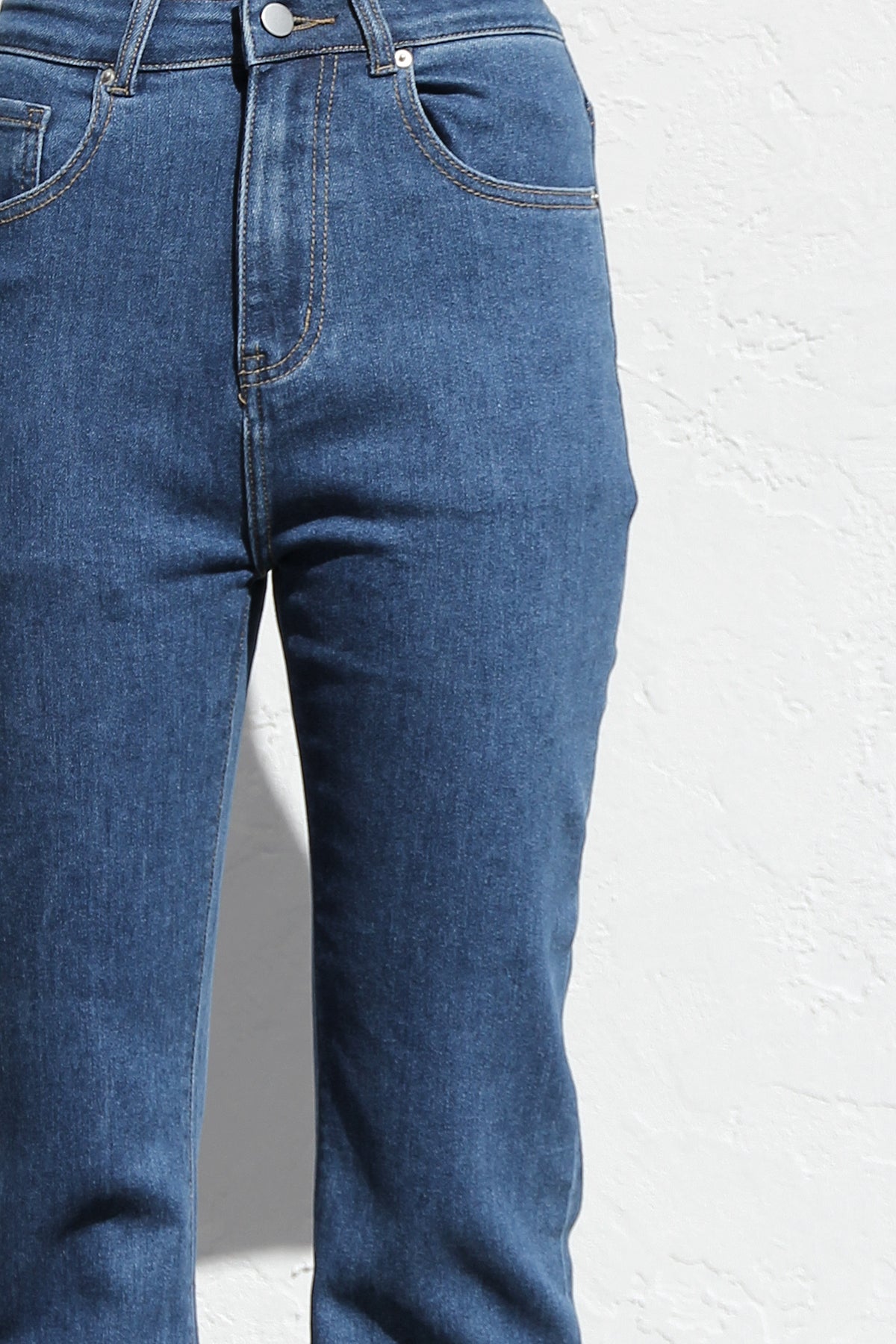 - mid-high rise jeans in dark blue denim
