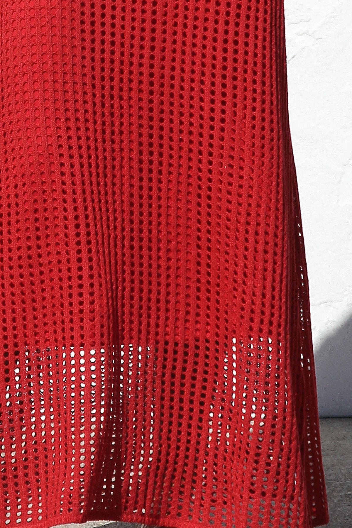 fabric: polyester (see through to the skin where unlined due to the nature of crochet knit fabric
