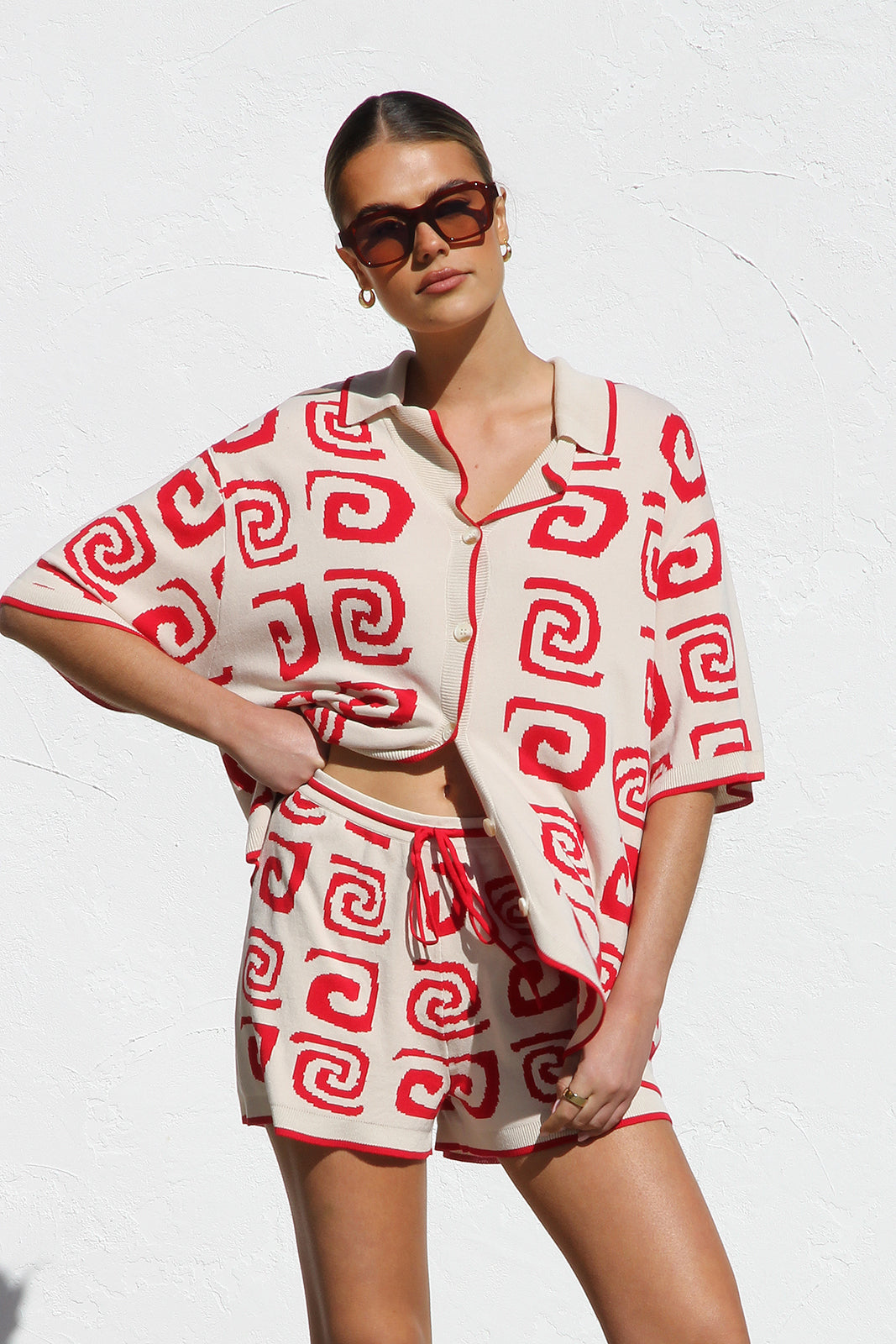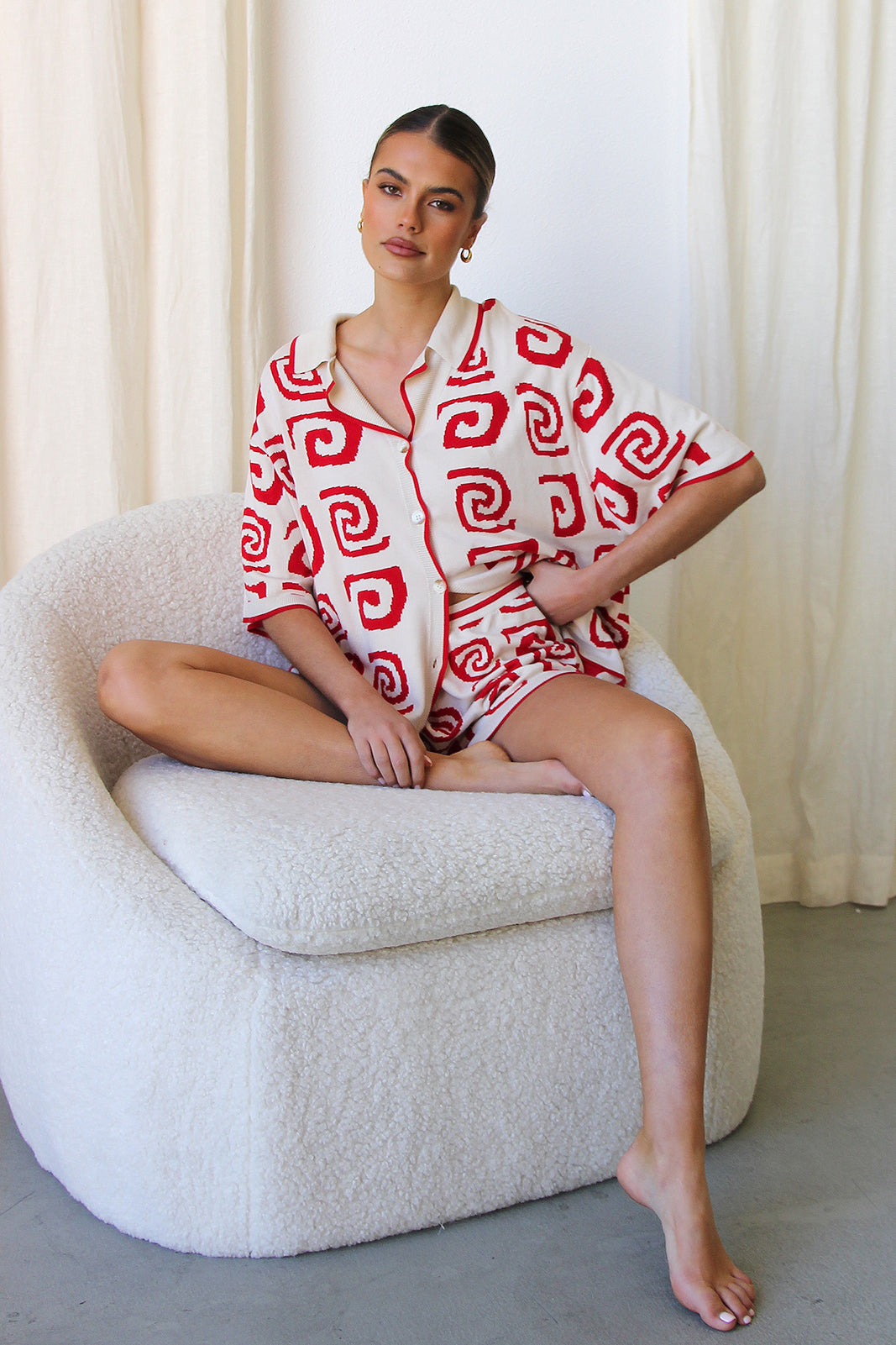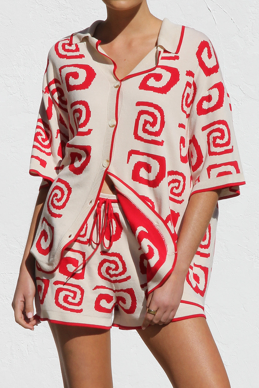 - red and cream two piece knit set