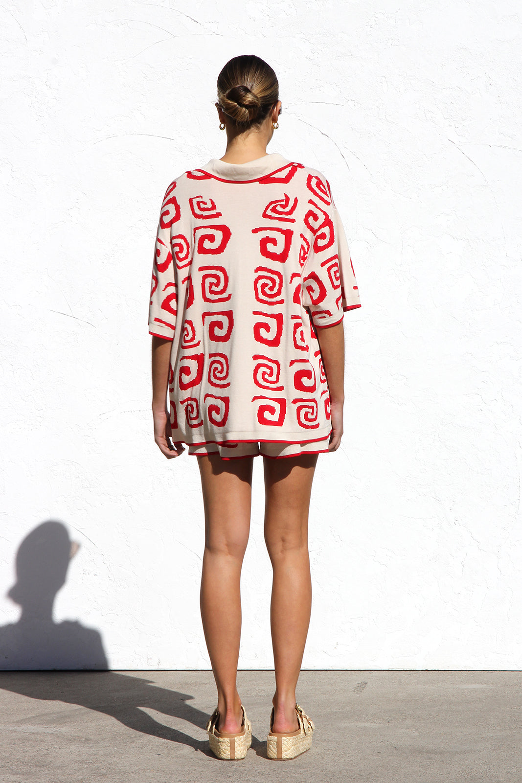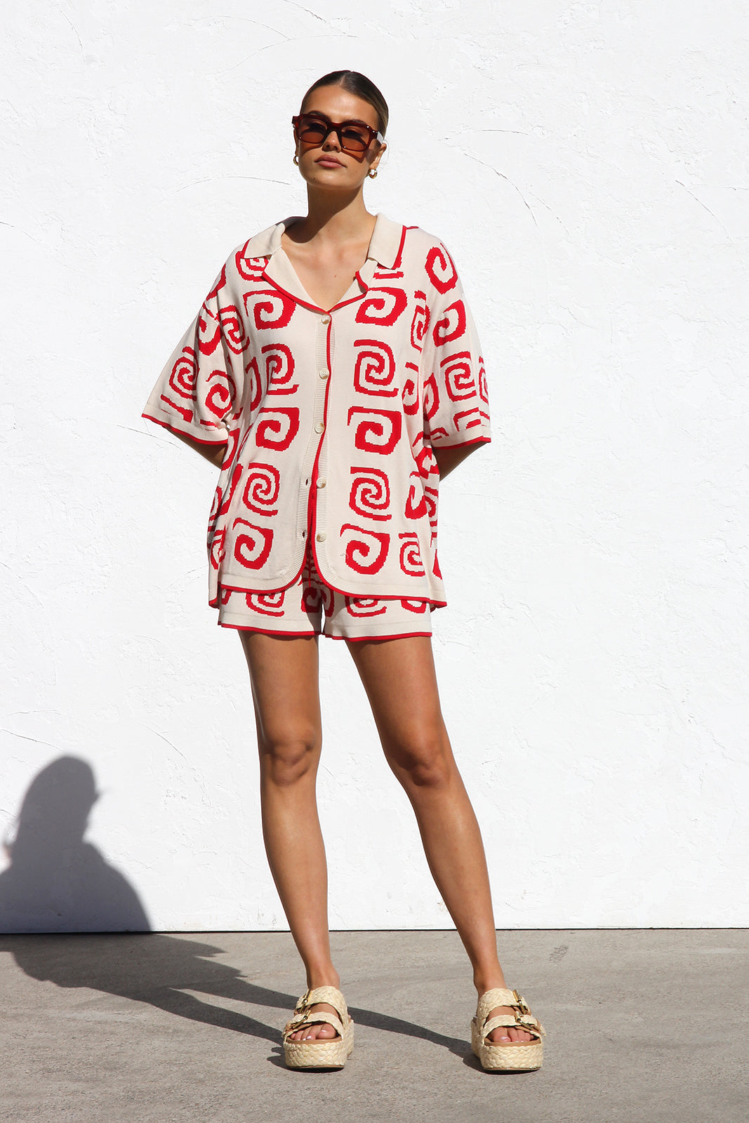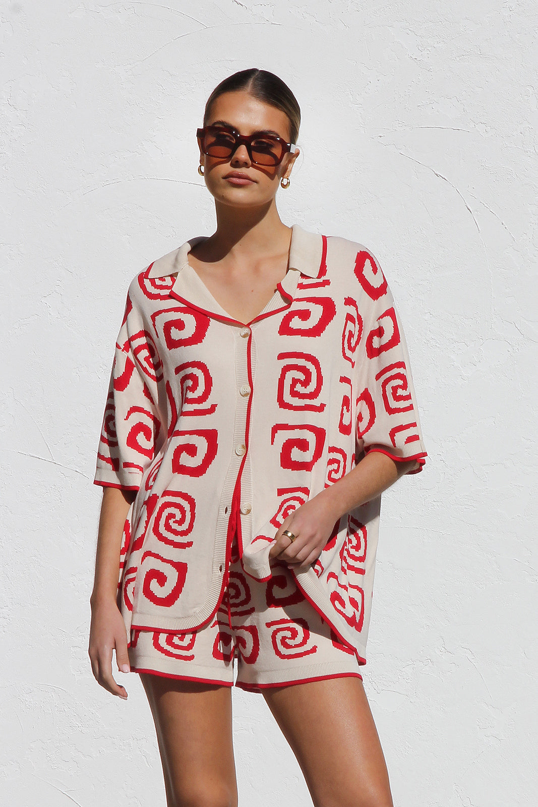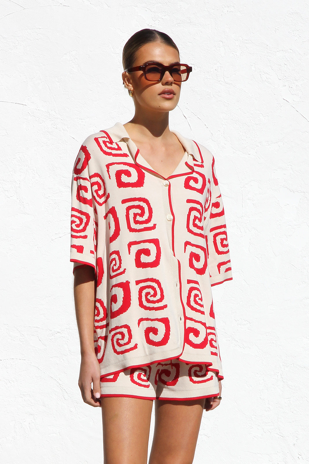 - red and cream two piece knit set