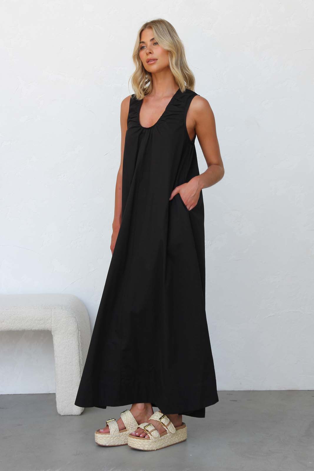 - black sleeveless maxi dress