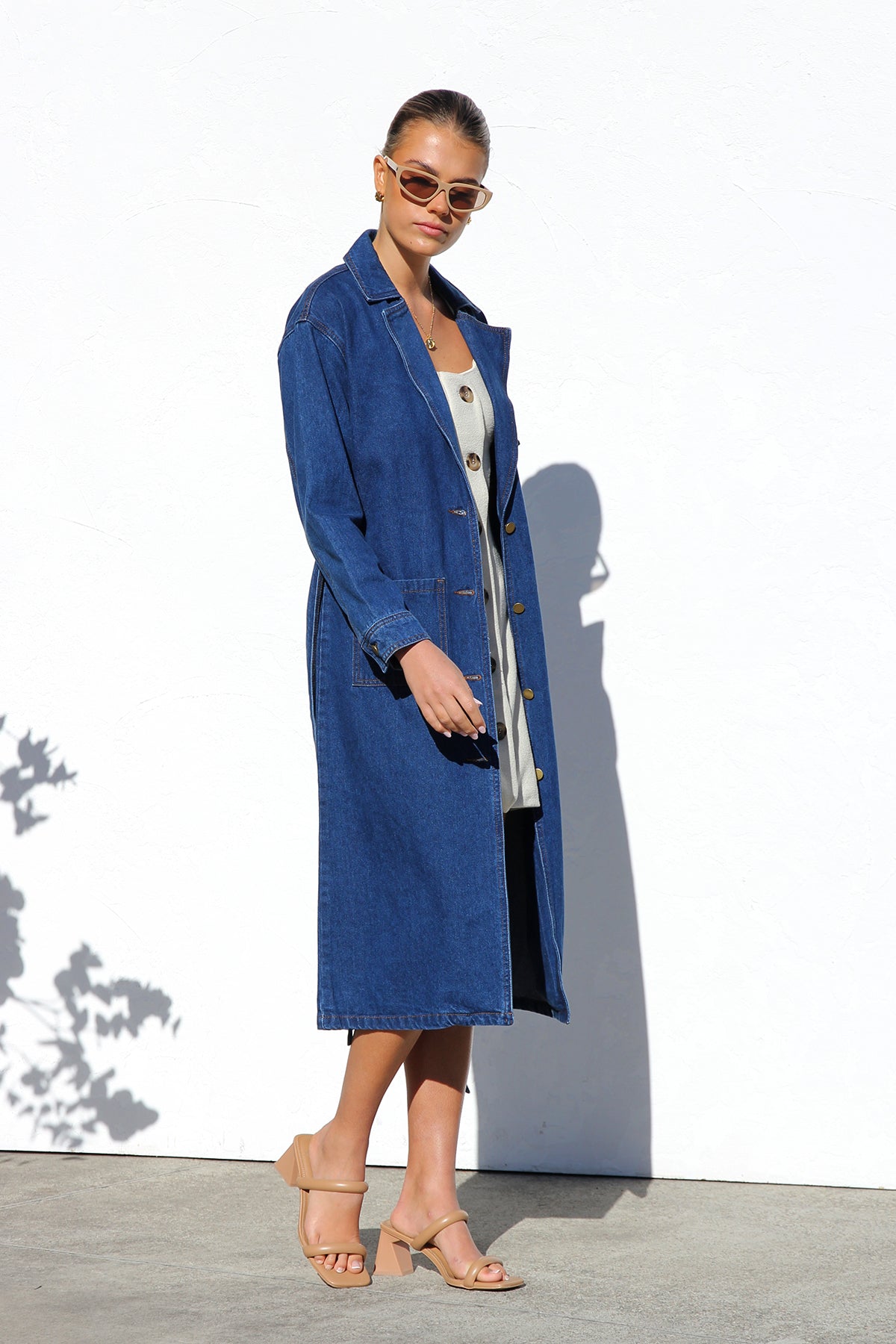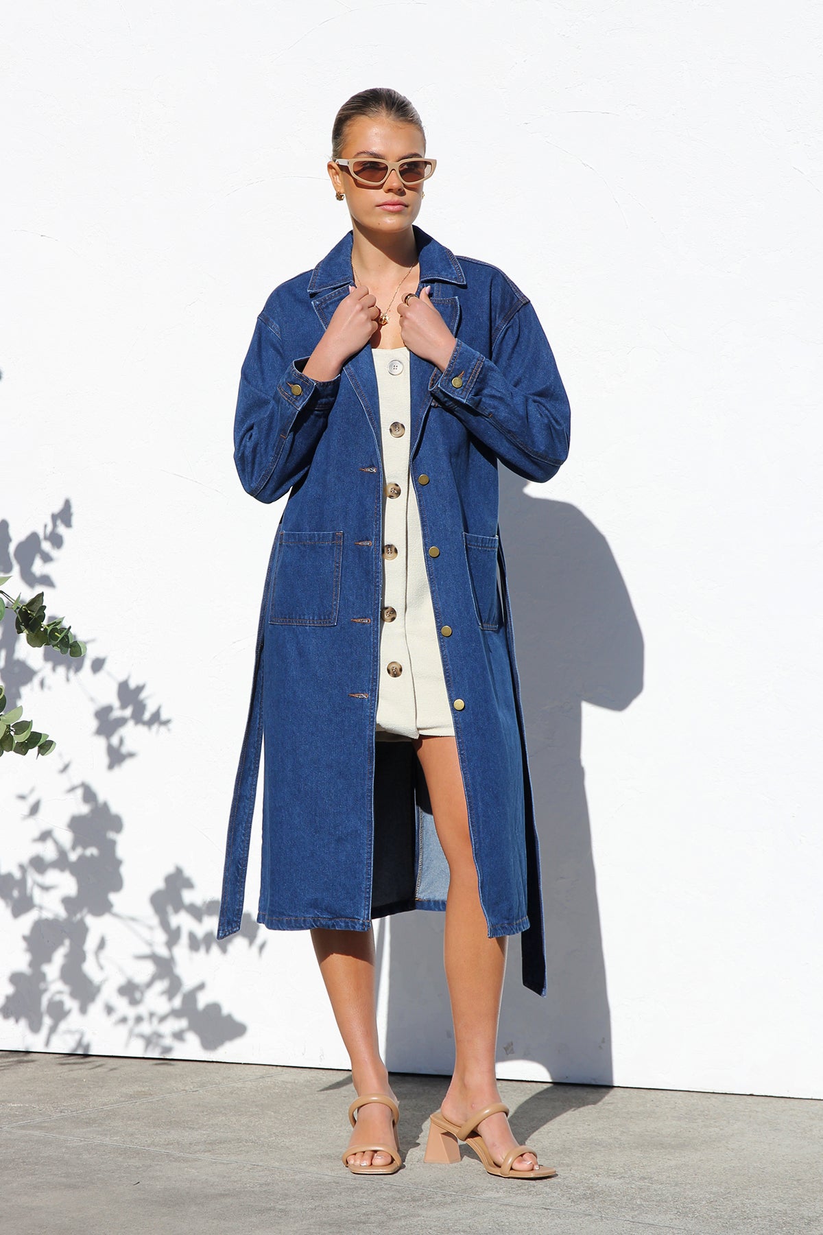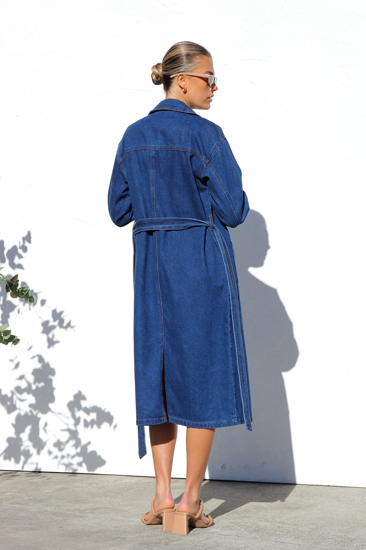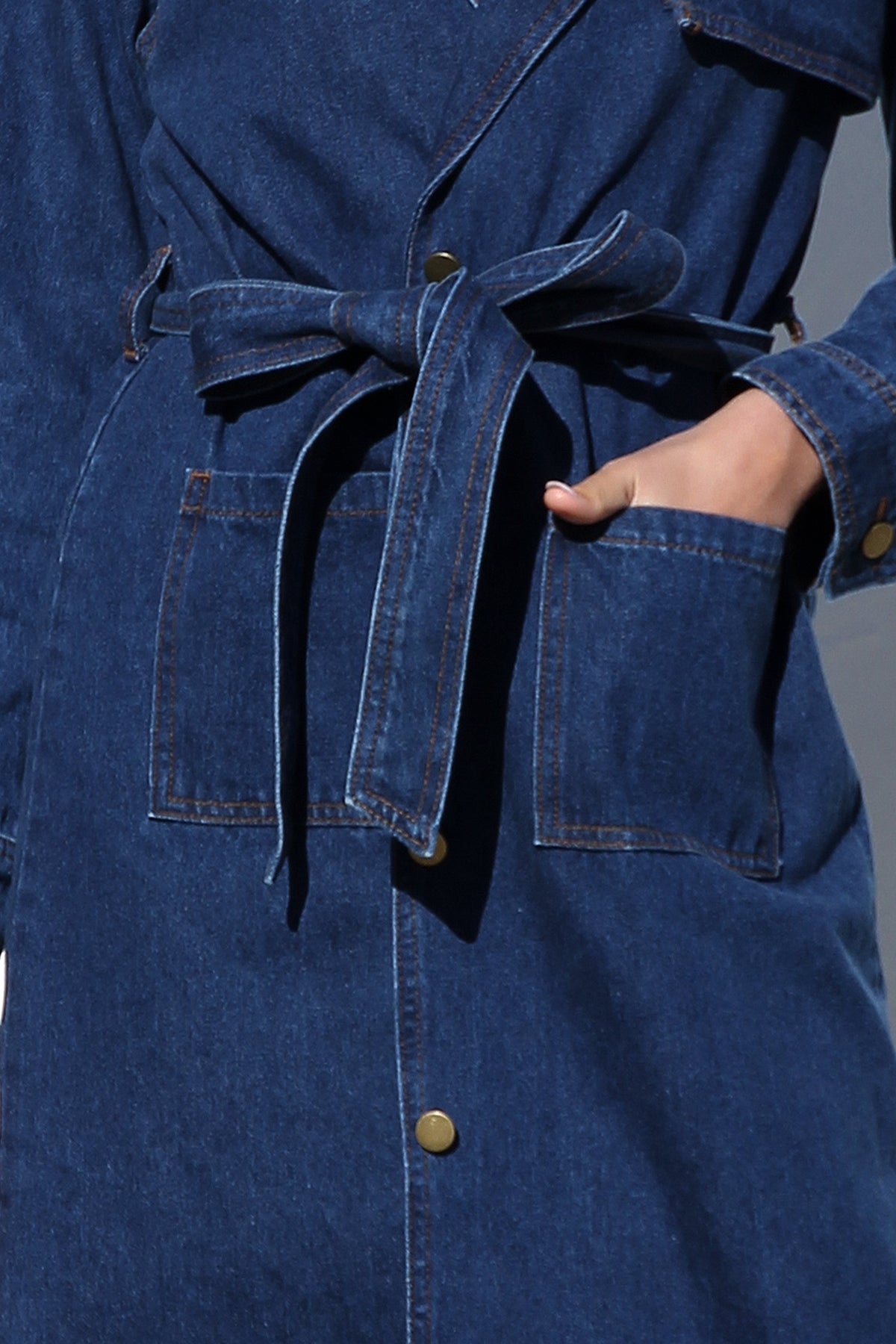 - long-line denim trench coat