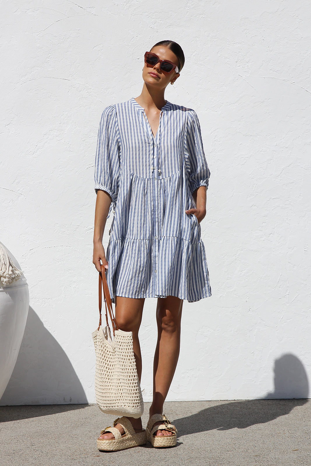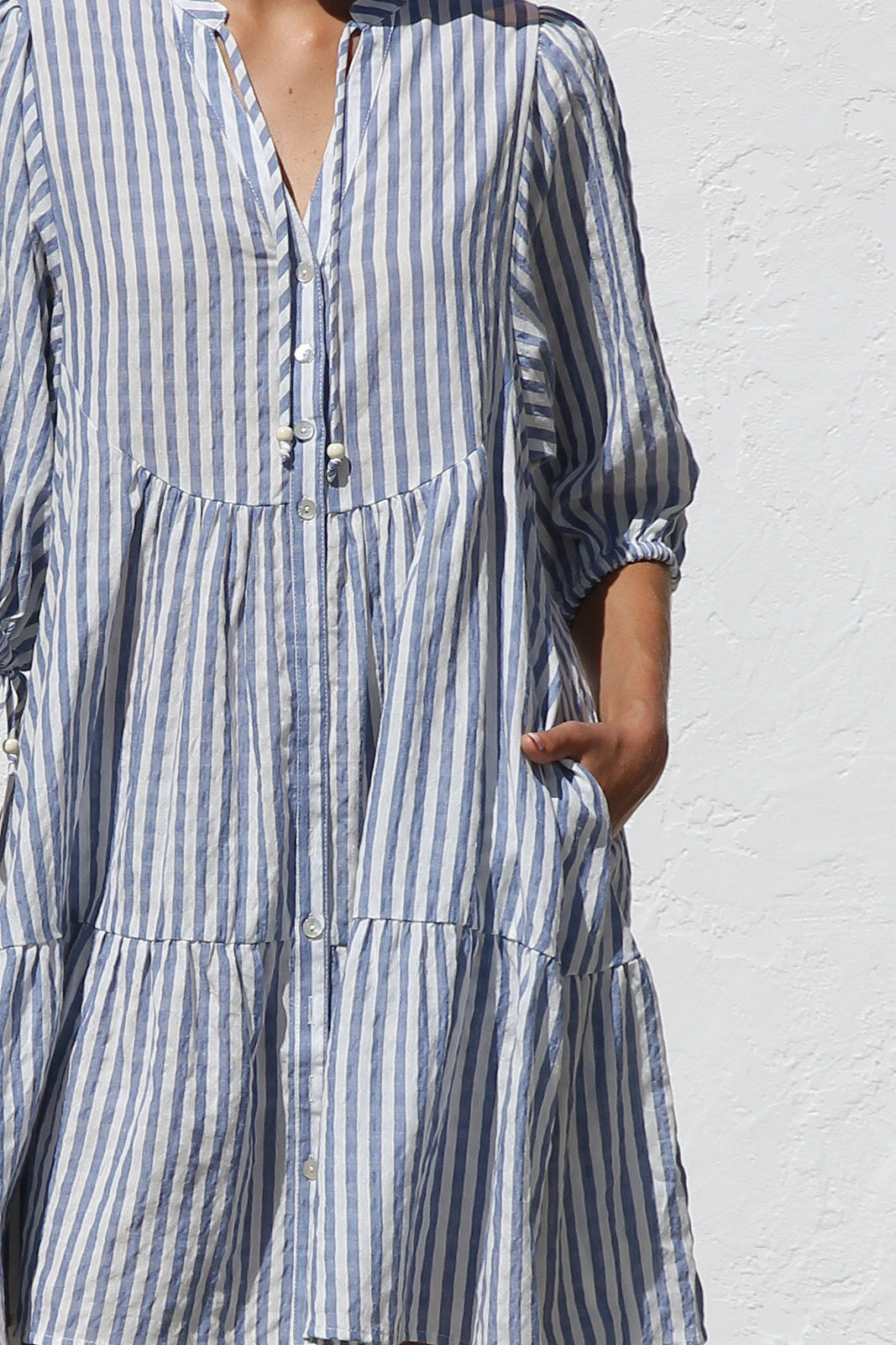 - billowy elbow length sleeves with elastic cuff and adjustable self tie