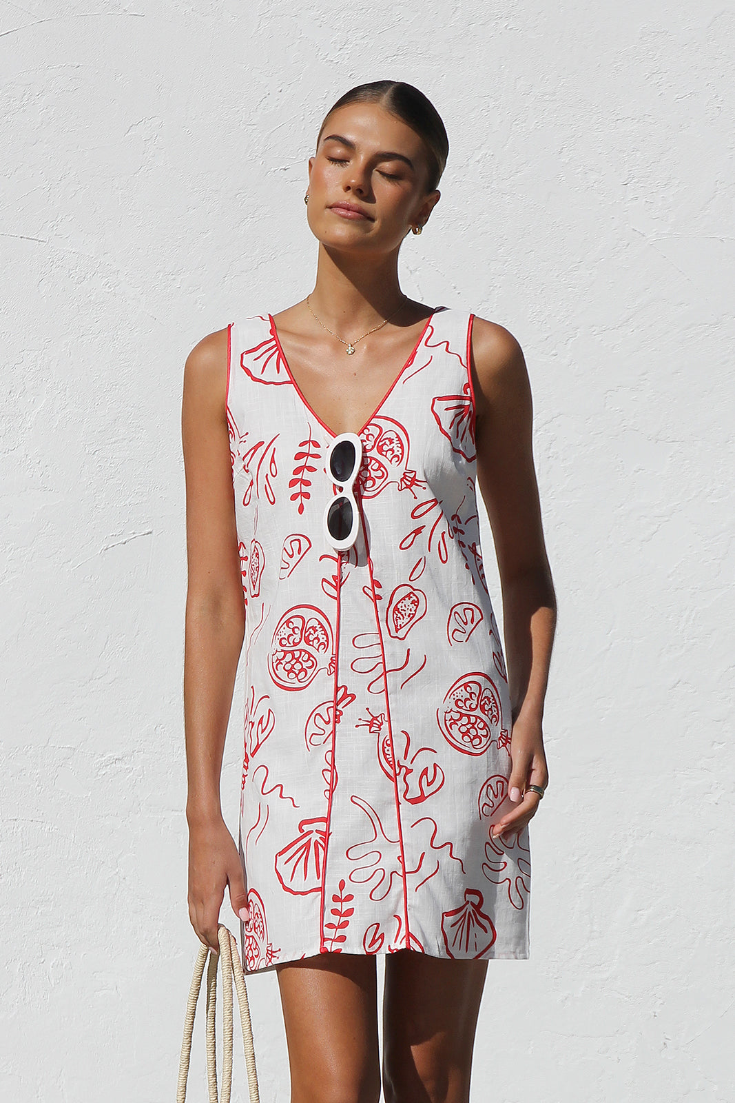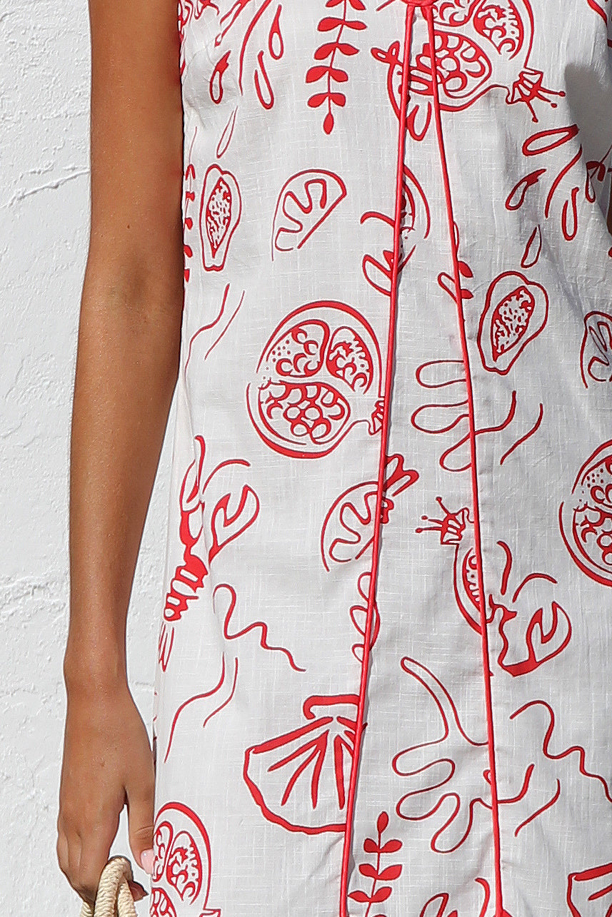- white and red print mini dress