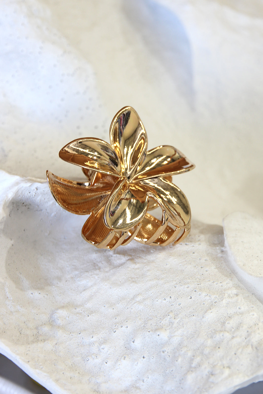 - metal flower claw clip in gold
