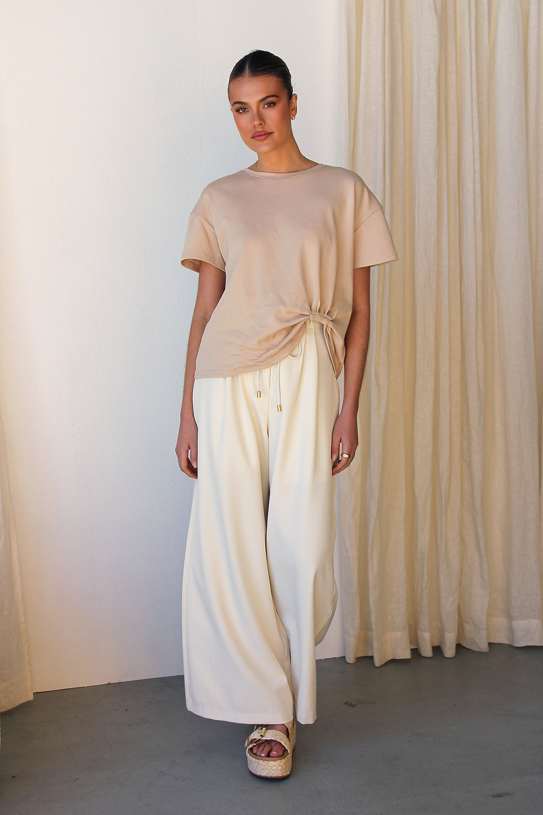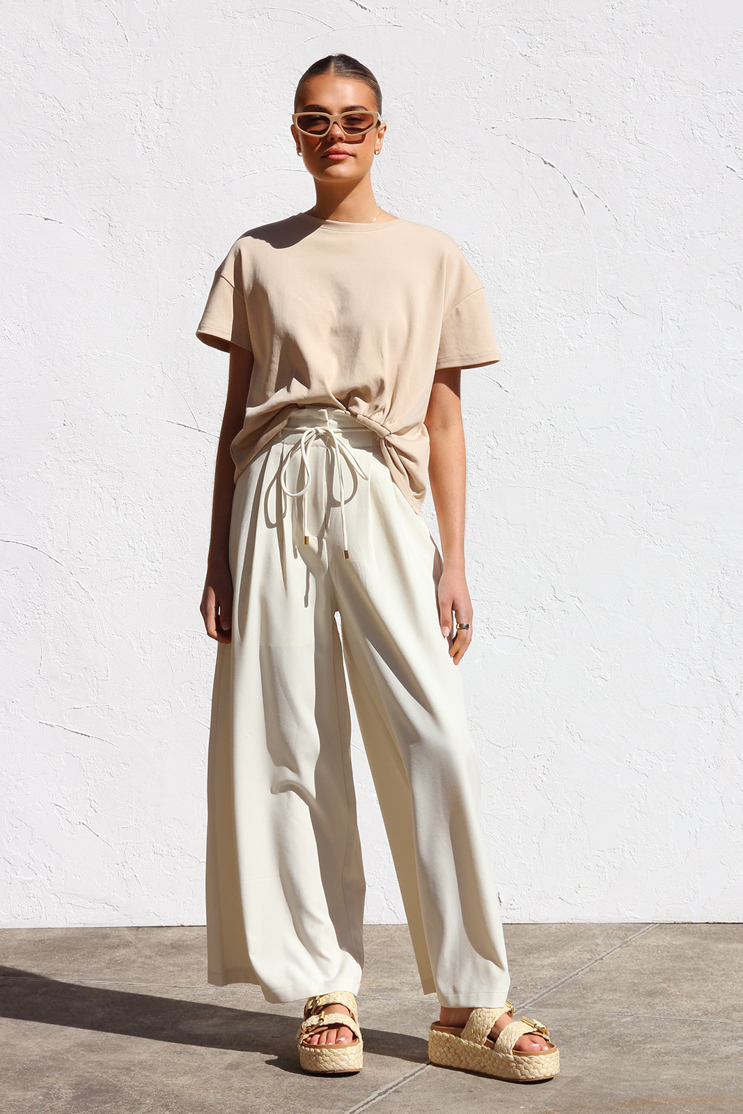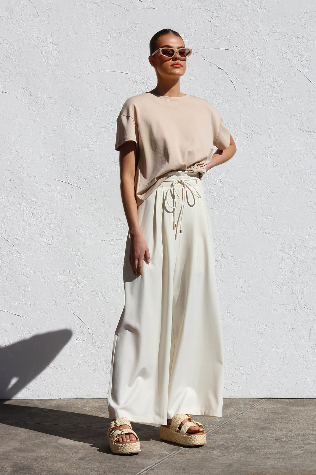 • wide leg pants in cream