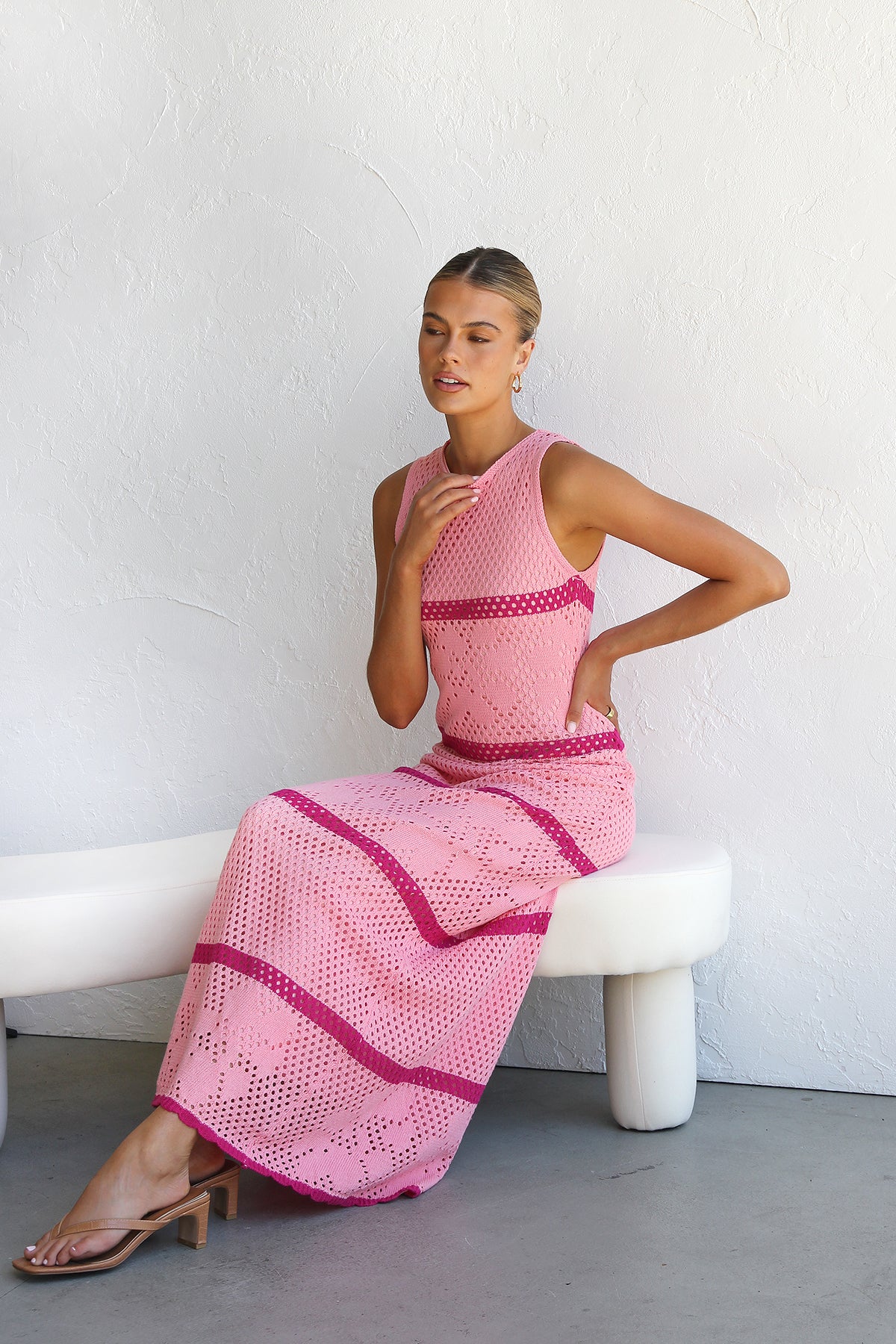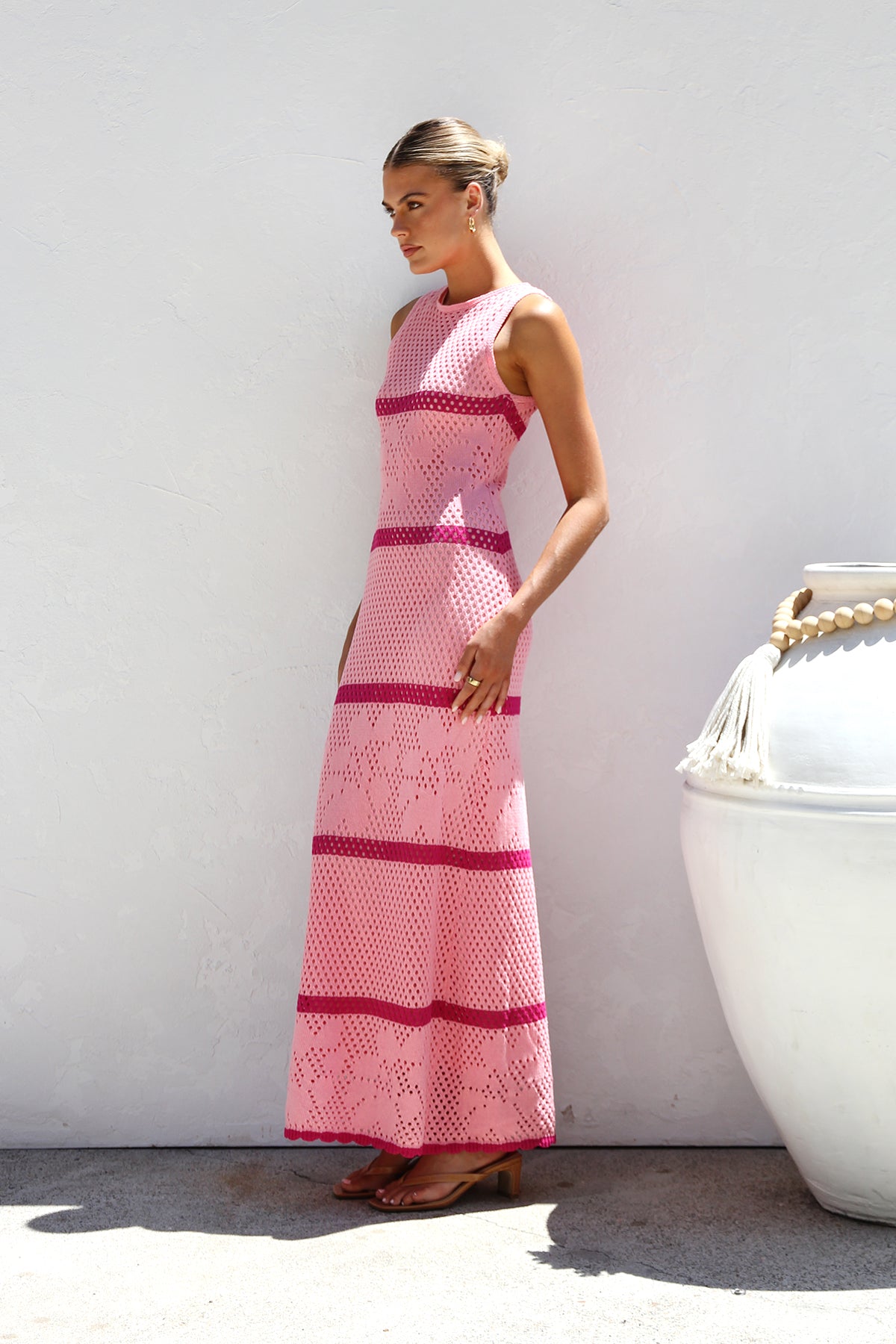 - sleeveless crochet knit like maxi dress