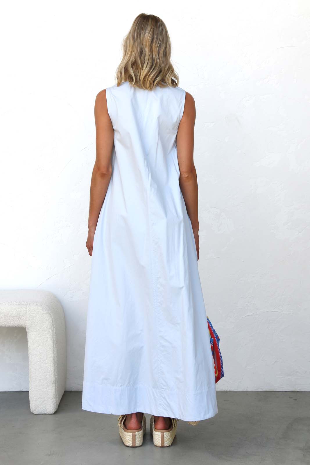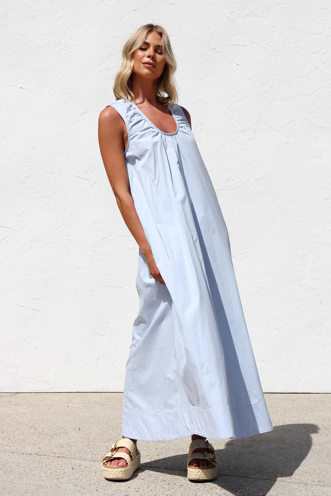 - sky blue sleeveless maxi dress
