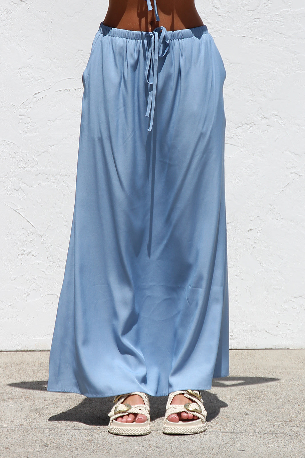 - lightweight blue top and maxi skirt set