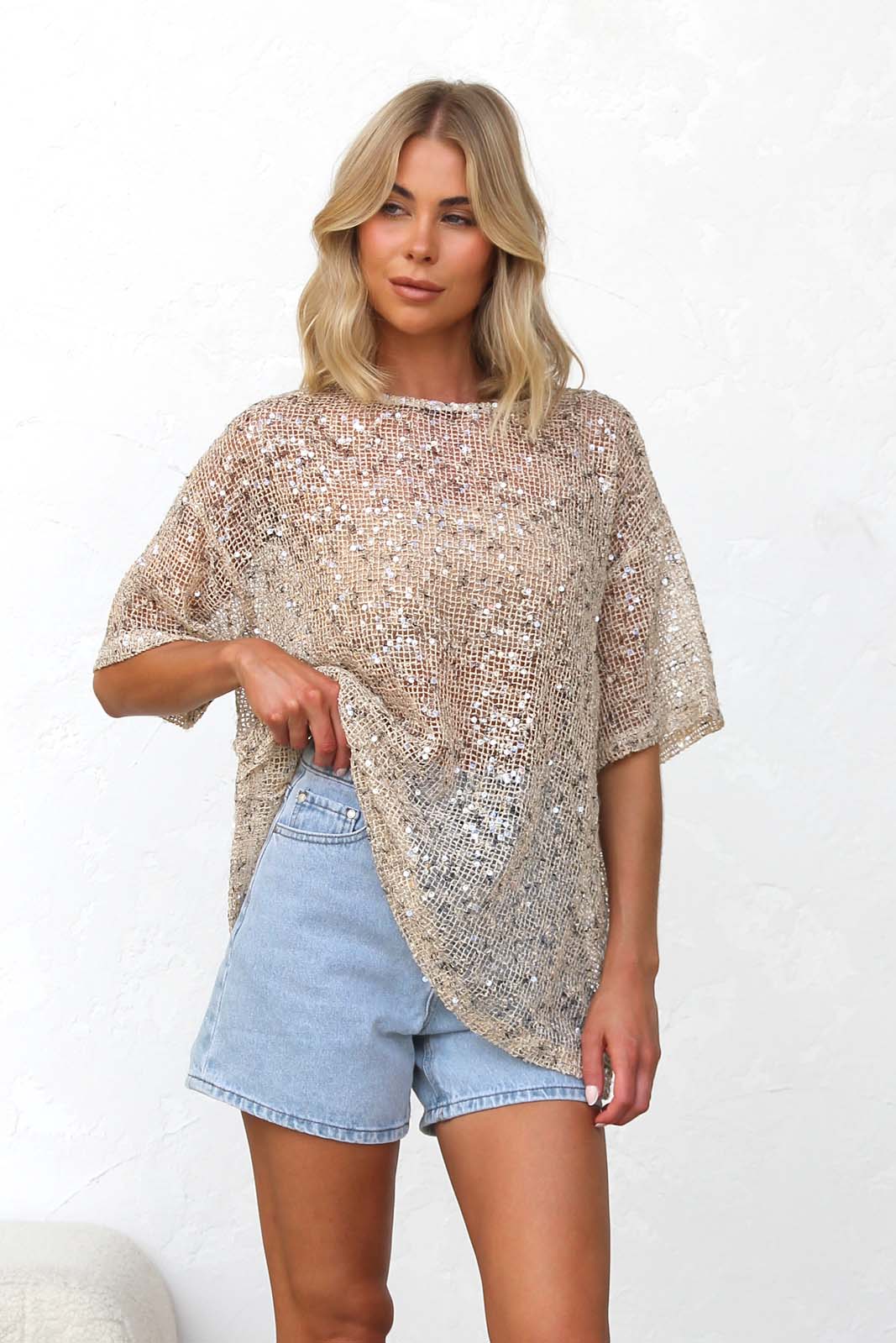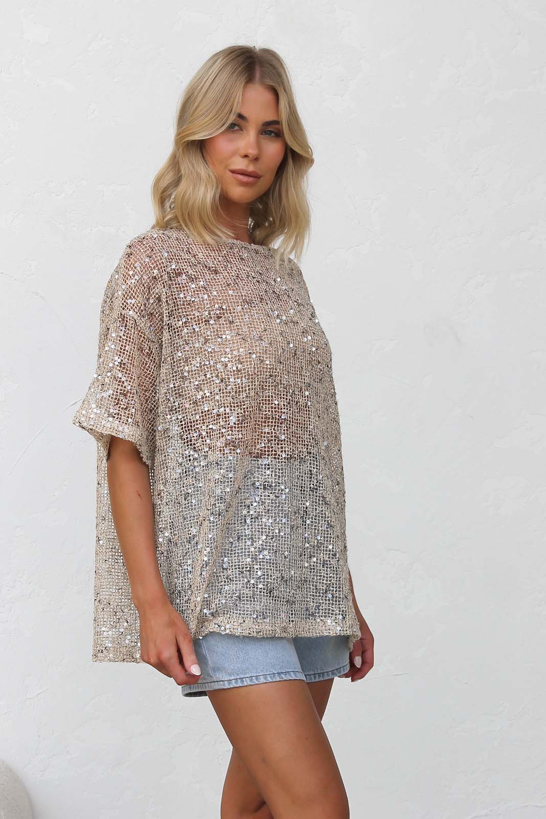 Imelda Sequin Top BEIGE