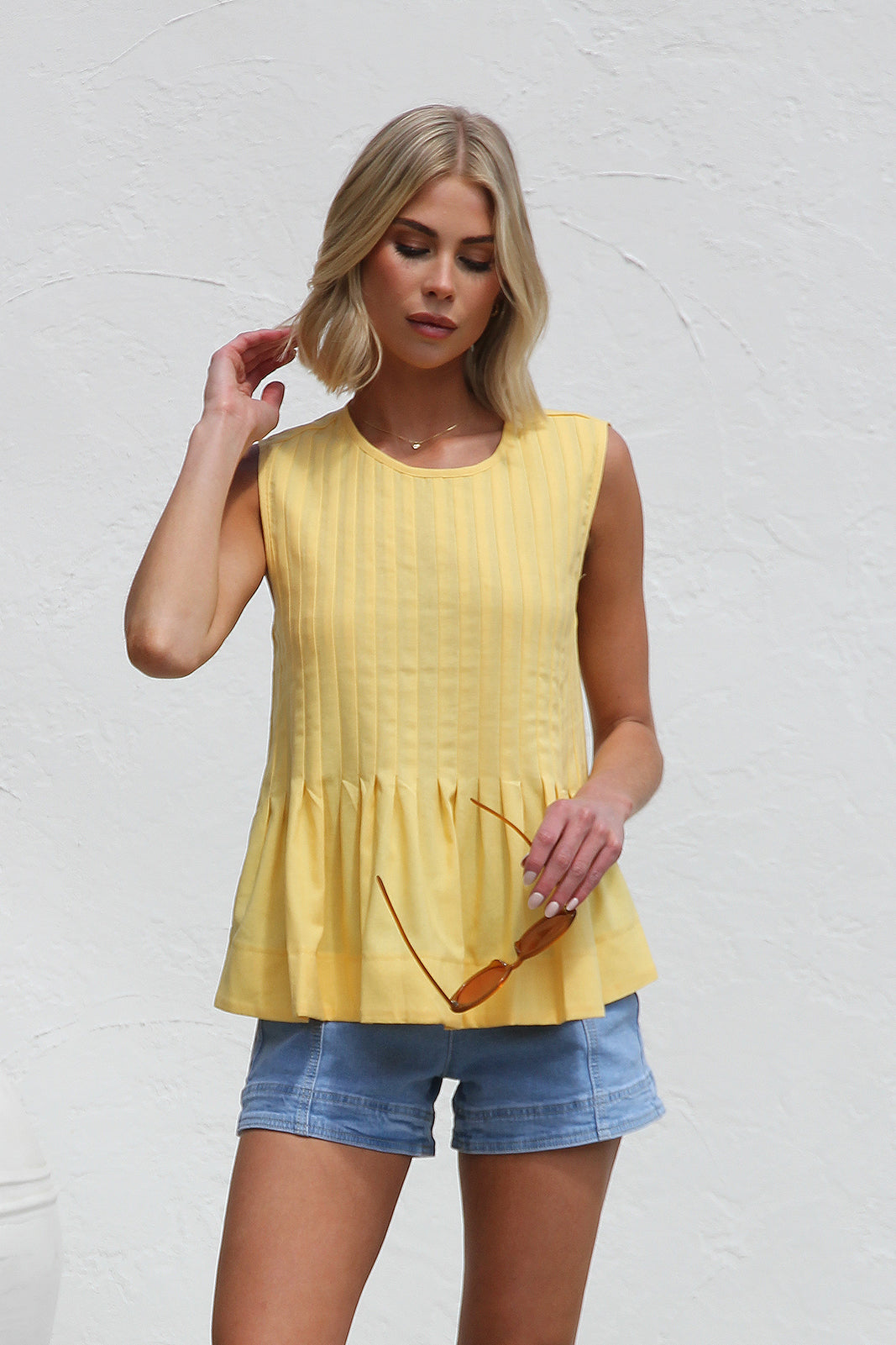 - yellow sleeveless top